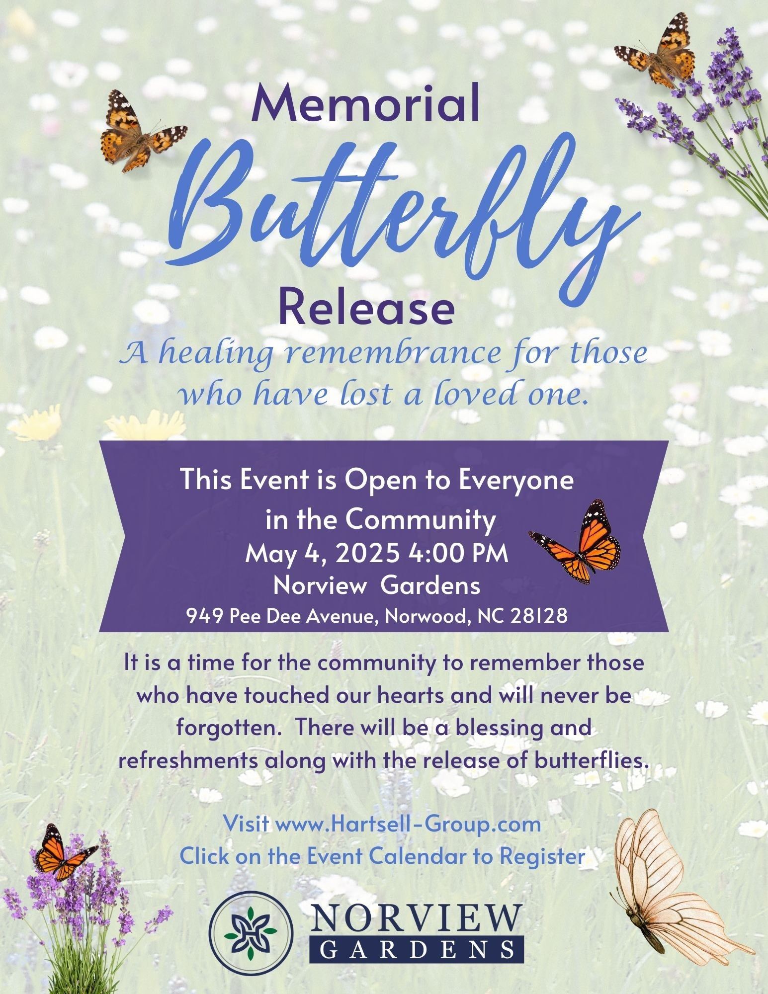 Our annual Butterfly Release is a healing remembrance for those who have lost a loved one... a time for the community to remember those who have touched our hearts and will never be forgotten.