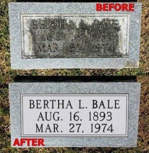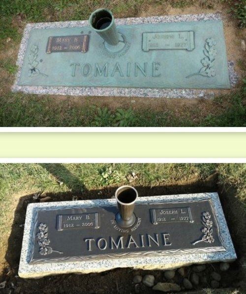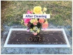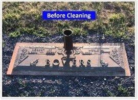 If your marker is dirty or has mold spots, we can clean it. There are two main reasons to clean a gravestone. First, it may need to be cleaned to preserve its structural integrity. For example, plant roots can creep into the stone and cause cracking that may split the stone. Lichen can eat away at the surface causing it to crumble. And second, plant growth or darkening can obscure names, dates, and other data. Correct and careful cleaning procedures can keep the stone readable and prevent future deterioration.